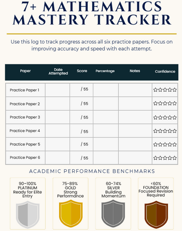 Each paper is designed to help children build a deep understanding of core concepts, while also developing confident, independent problem-solving skills needed to succeed in the 7+ Maths exam.